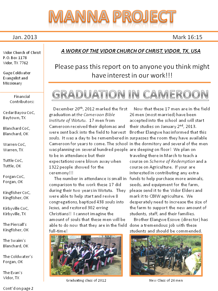 Jan 1013 Report By Gage Coldwater Post Views: 0 Posted in Uncategorized ← News From Cameroon!!!UPDATE FROM TANZANIA → About Gage Coldwater View all posts by Gage Coldwater →